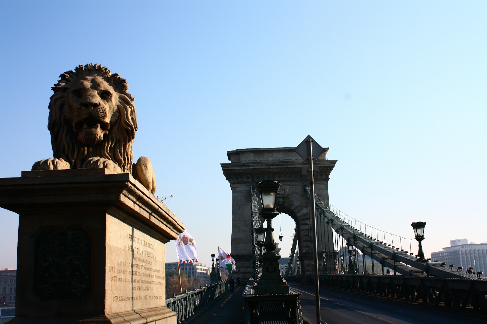 Na ponta da ponte há alguns leões. Dizem que na grande inauguração da Ponte, um pequeno garoto, olhando as estátuas, exclamou bravamente: “Os leões não têm língua!”. O arquiteto da ponte, extremamente constrangido, se atirou no Danúbio e nunca mais foi visto até então. Há que, diga que as línguas estão lá, mas devido à posição em que olhamos para os leões, não é possível vê-las.