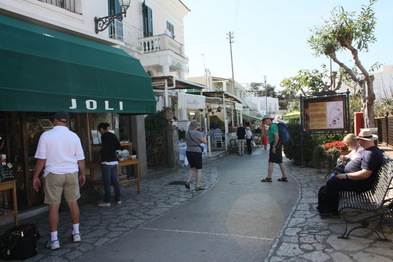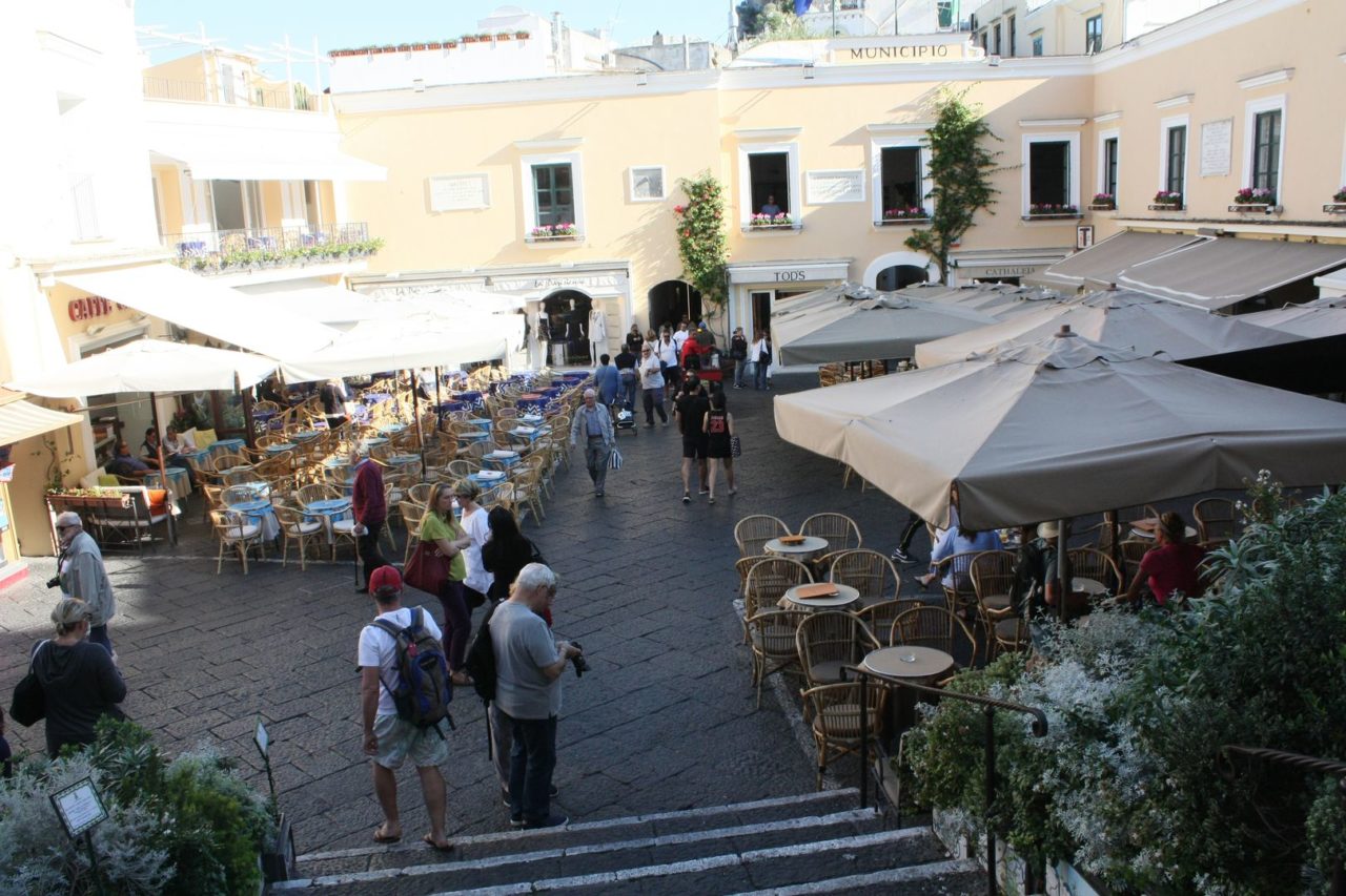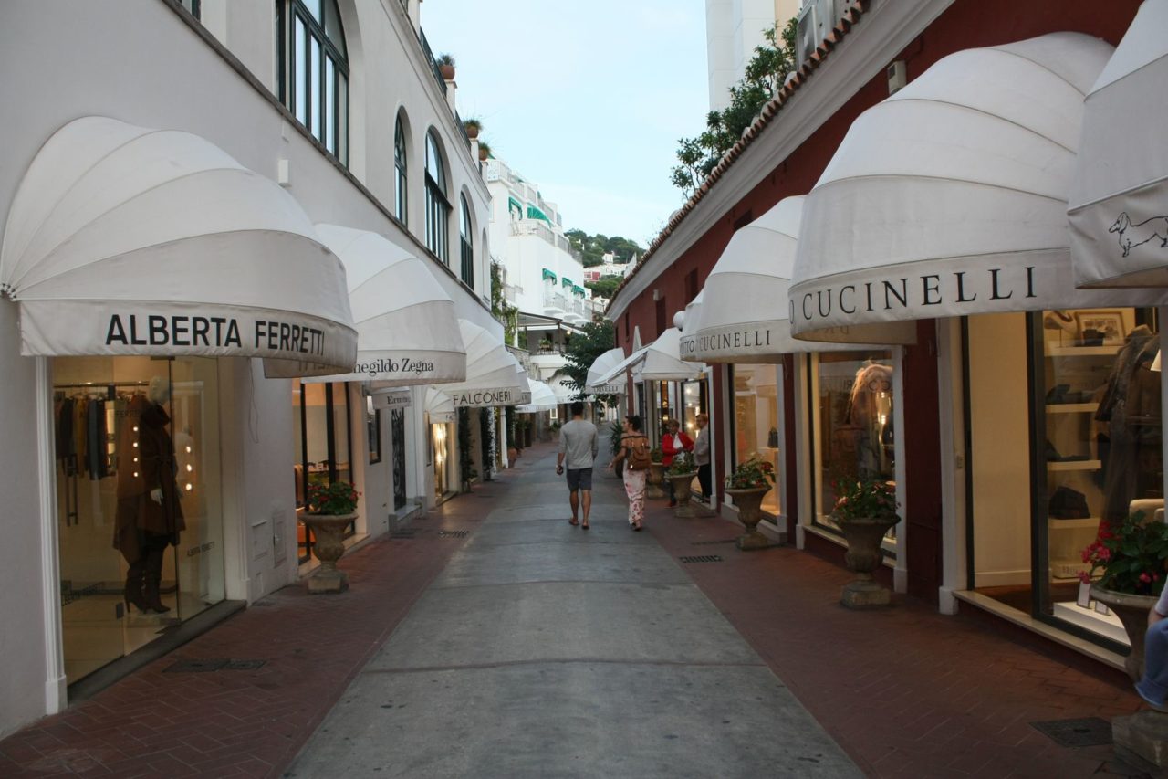 Capri é o centrinho da ilha, onde certamente todos passam. Aqui está o centro comercial da cidade, com suas inúmeras lojas de grifes. Os melhores hotéis e restaurantes também estão nesta área da cidade e a Piazzeta, a praça central rodeada por restaurantes para ver e ser visto.