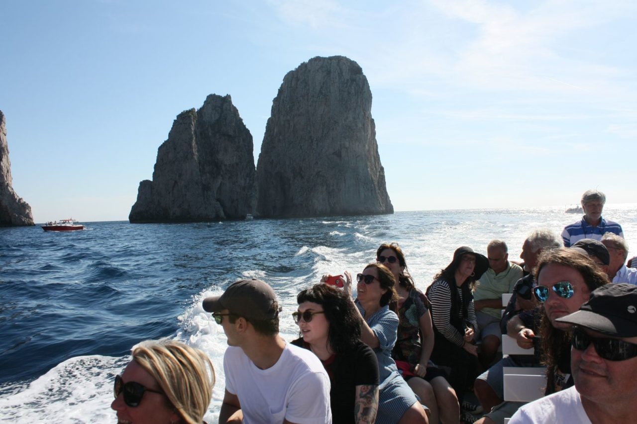 Mas voltando ao tour ao redor da ilha, são cerca de 2 horas de duração, com visita a algumas grutas de águas azuis e aos famosos Farigliones de Capri.