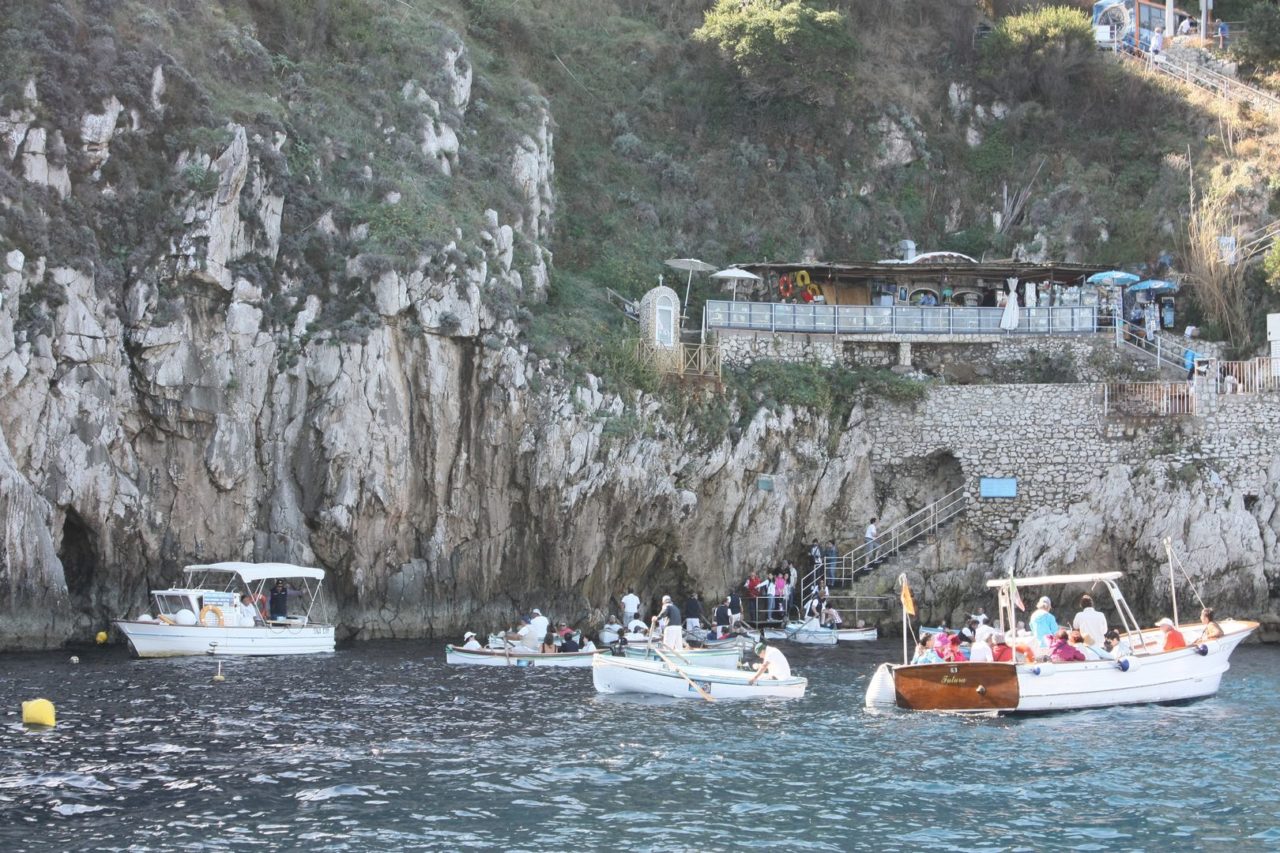 No dia que fomos, tinha uma espera de 2 horas dentro do barco para quem quisesse entrar na Gruta. A demora era tanta que o nosso barco voltou pra Marina Grande para voltar mais tarde com os passageiros que queriam entrar na gruta, para esperar que fila de espera diminuísse! Eu que já não tinha nenhuma intenção de fazer o tour da gruta tive certeza ao ver aquele congestionamento de barcos!