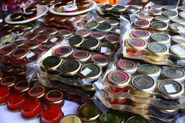 Mas há também outras iguarias bem mais saborosas, como os vários tipos de caviar, camarões, lagostas e salmões.