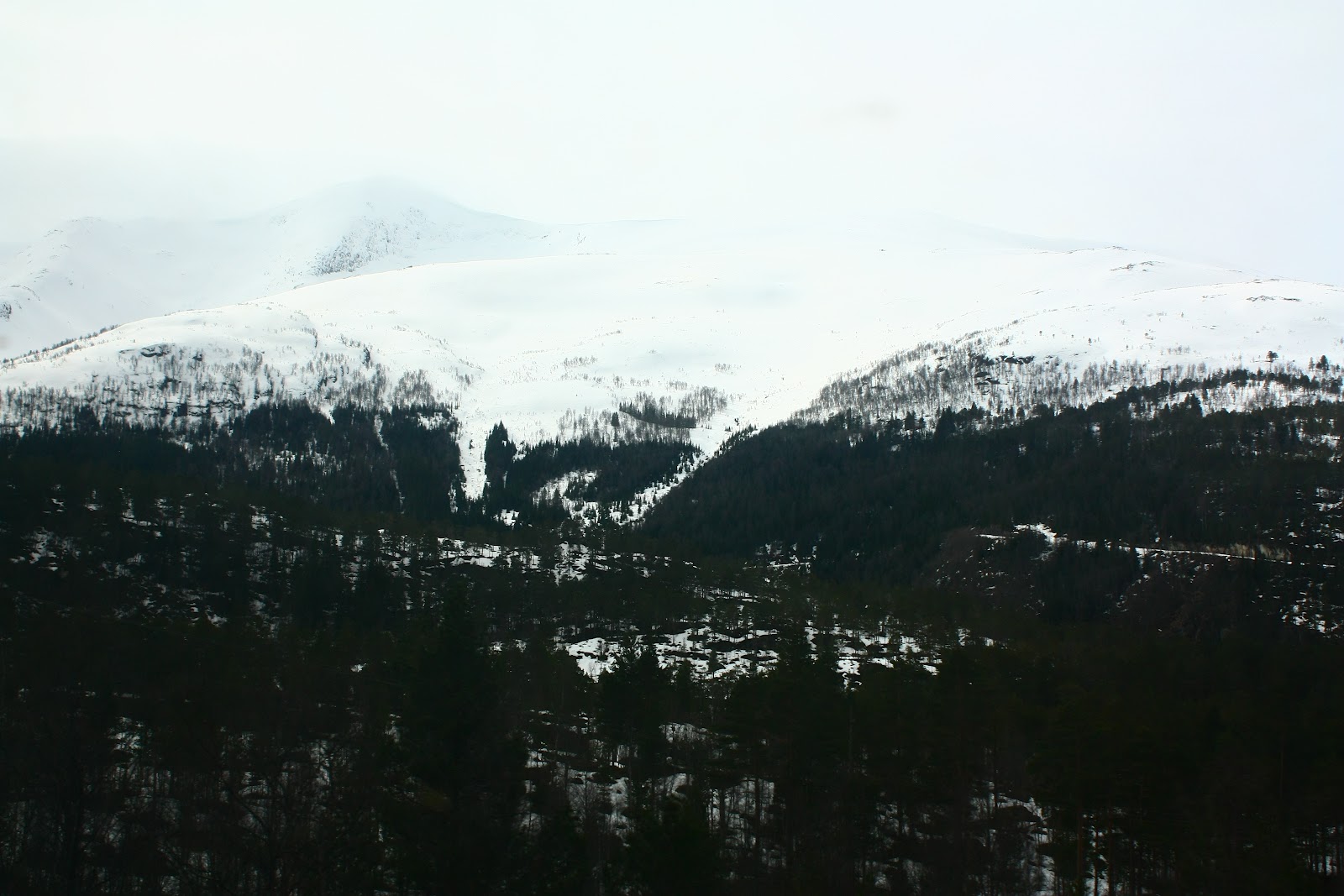 Quando estamos nos aproximando de Voss, a capital dos esportes radicais da Noruega, tudo começa a ficar branquinho, repleto de neve. Nas imediações da cidade, há algumas pistas de ski e vimos várias pessoas equipadas pra explorar a região.