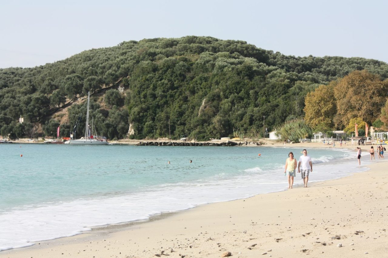 Dia seguinte, a caminho de Igoumenitsa, paramos no Balneário de Sivota, outra gracinha de lugar…Como era bem cedo, o centrinho estava vazio e quase tudo ainda fechado. Fomos conhecer a praia de Agia Paraskevi, que tem uma ilhota na frente e dá pra ir caminhando de um lado pro outro. Muita gente pratica esportes náuticos por ali, principalmente o SUP.