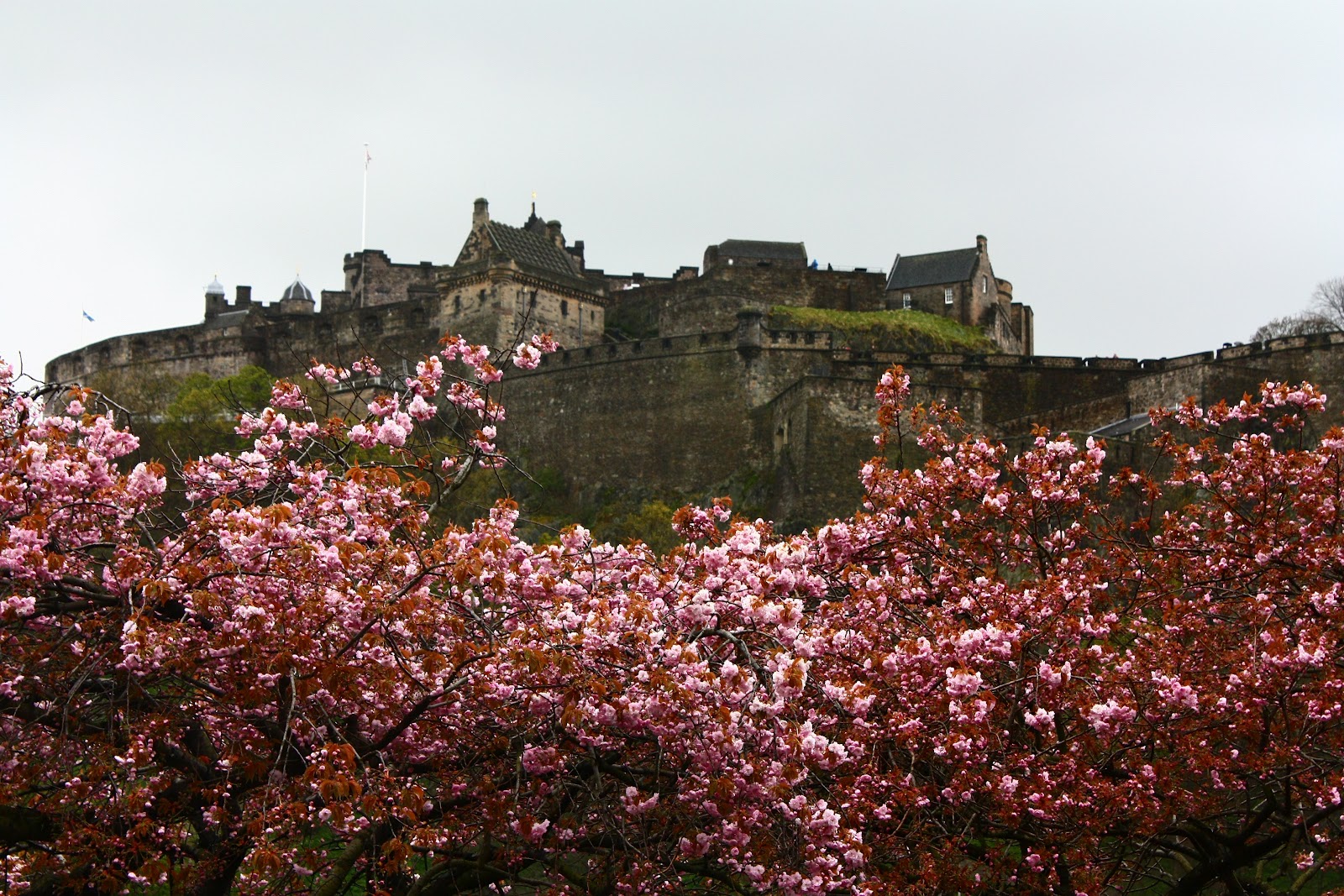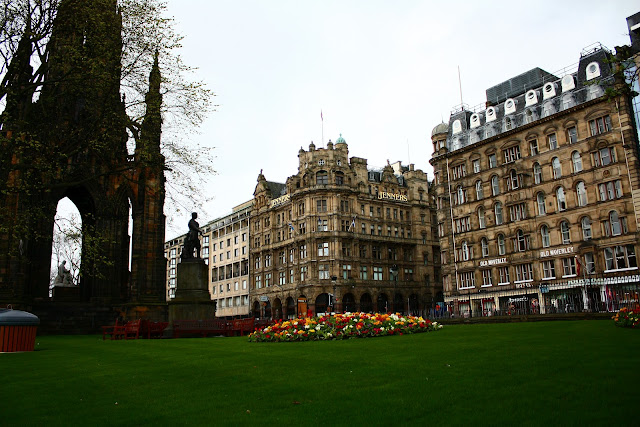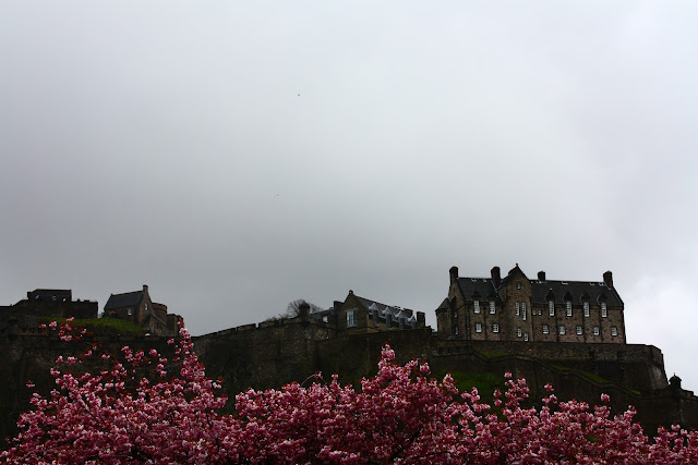 Da Princess Street temos uma das mais belas vistas do Castelo de Edimburgo, imponente, no alto da Castle Rock. As flores da primavera deixam o cenário ainda mais bonito! Bela cidade!!!