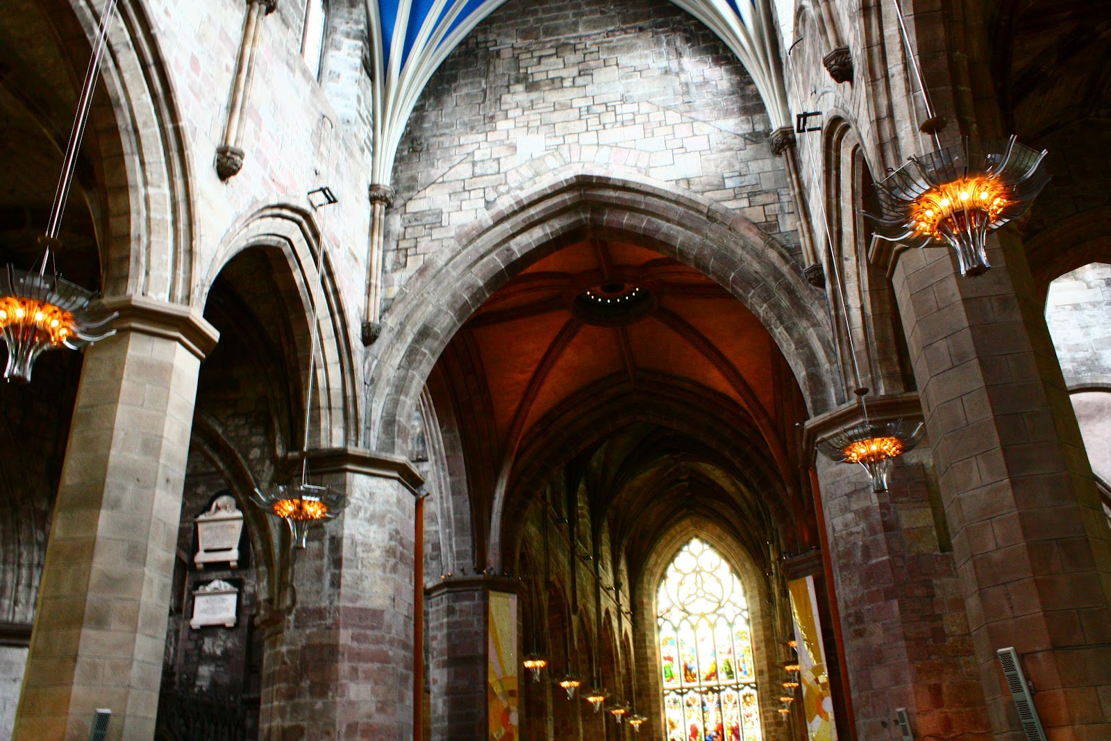 Dentro, a beleza da arquitetura impressiona, como a do teto da catedral e a beleza da Thistle Chapel.