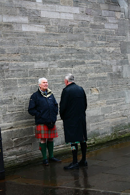 Aqui também é possível ver os famosos homens de kilts, as “saias” escocesas. Alguns tocam gaita de fole.