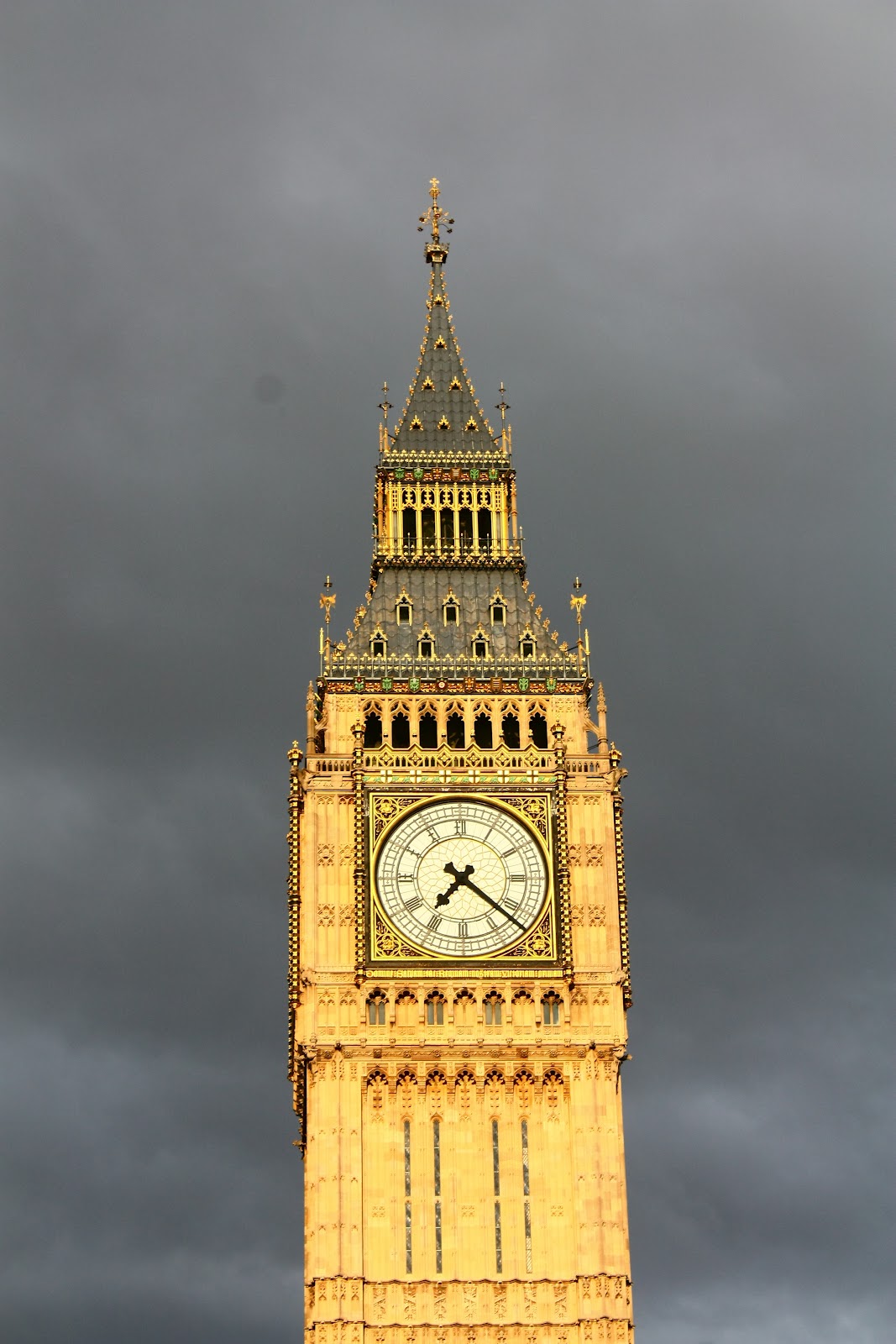 E foi muito bom chegar no Big Ben bem ao final do dia, em meio ao pôr do sol, pois seu tom dourado ocasionado pelos reflexos do astro rei foram de uma beleza tremenda! Bem diferente da visão que temos com a luz da manhã (voltamos no dia seguinte).