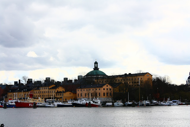 Da Styrmansgatan, tem se uma bela vista dos prédios amarelinhos na outra margem e dos muitos barcos por ali ancorados, além do National Museum.