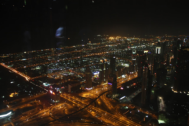 Mas melhor do que a vista de Dubai iluminada, é o elevador super mega high tech que, em poucos segundos, nos leva ao 124o andar, onde está o observatório. Quando as portas do elevador se fecham, uma música começa a tocar e um monte de luzes se acendem, dando a impressão que estamos numa boate e em menos de 1 minuto, estamos quase tocando o céu. Incrível!