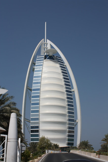 Por fora, o hotel já impressiona pelo design moderno. Lembro de quando recebi, há mil anos atrás, um power point desses da internet com todas as extravagâncias deste hotel e na ocasião, logo pensei logo que era montagem de gente que não tinha o que fazer e ficava inventando estas coisas. Imagina se tudo aquilo existia? E pior que existe, mas para desfrutar dessa mordomia toda custa caro. As diárias custam algum milhares de dólares e para se ter acesso ao interior do hotel de uma forma mais “barata”, o jeito é reservar um almoço ou até mesmo um chá em um de seus vários restaurantes, por não menos que USD 200 por pessoa. Loucura, loucura, loucura! Mas uma loucura deliciosa! Por muquiranice minha não fomos e me arrependi! Na verdade, nem chegamos a conversar sobre se queríamos ir ou não. Só hoje vejo que devia ter ido e ponto final!