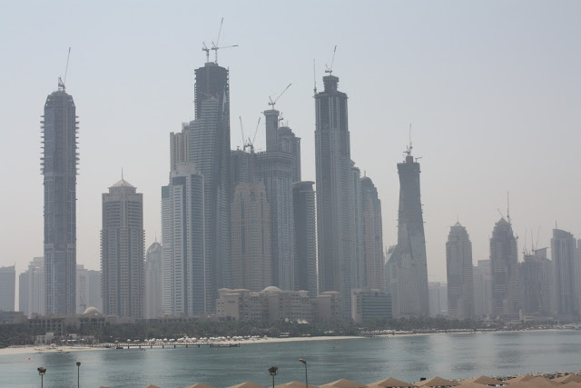 Depois de visitarmos o bairro, decidimos experimentar a sensação de um banho de mar no Golfo Pérsico e tomamos um táxi até a praia mais próxima. No caminho, mais prédios e gruas por toda parte, nesta cidade que não para de crescer.