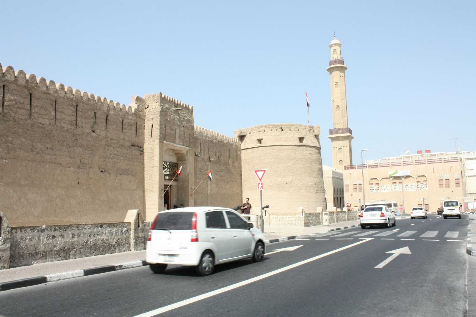 Em nosso último dia em Dubai, acordamos e fomos visitar o tranquilo bairro de Bastakyia, um dos mais antigos da cidade, onde um passeio é obrigatório para se observar a arquitetura árabe e suas lojas não tão abarrotadas de turistas, como em Deira. É aqui que está o Museu de Dubai, uma de suas principais atrações, além do Old Souk e da Grand Mosque, com seus domos de cor nude.