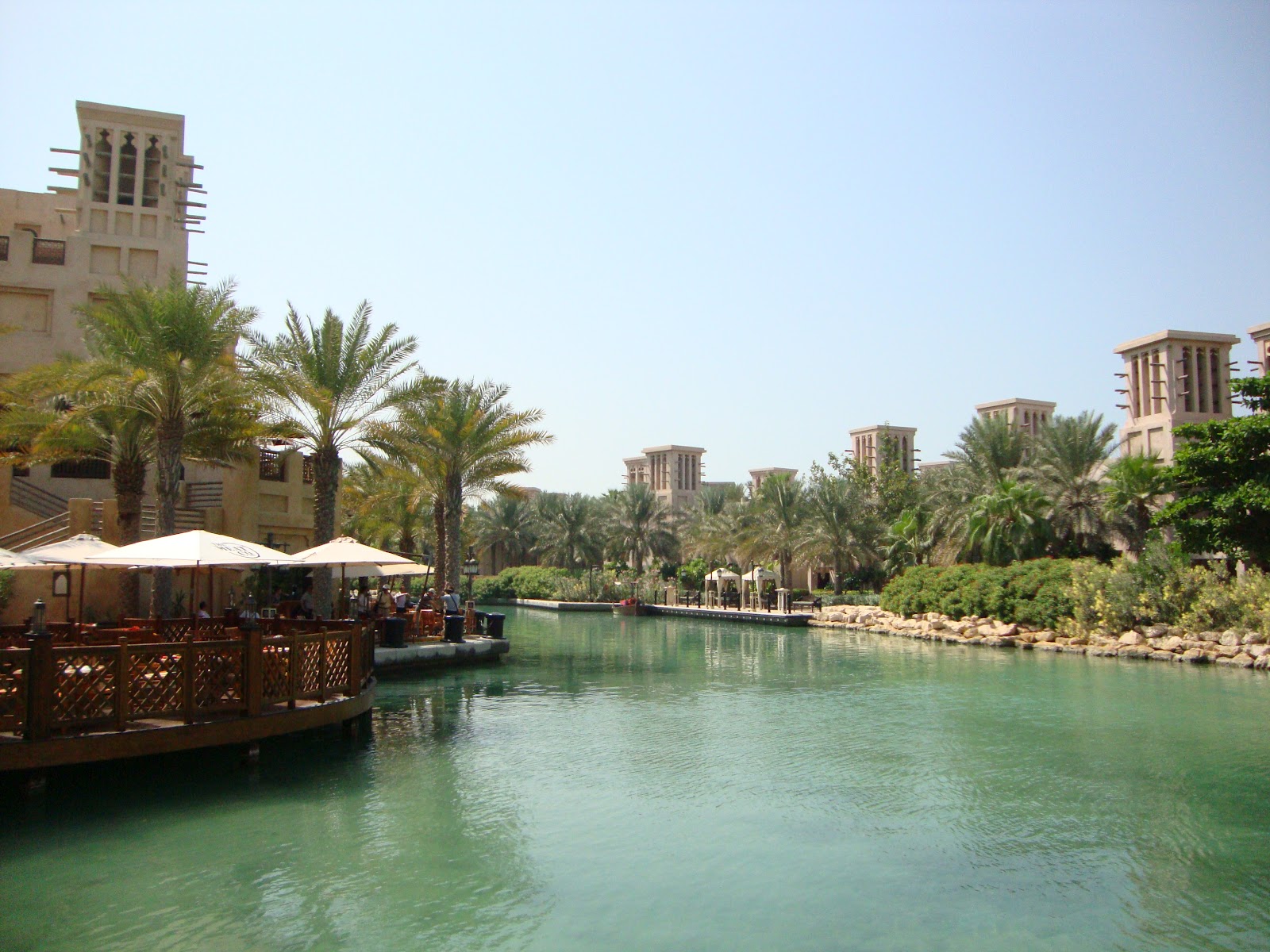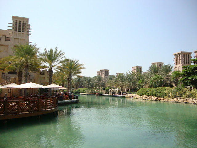 Na área externa, vários cafés e restaurantes estão localizados ao redor de um canal, onde se pode fazer um passeios de abra e de onde se tem uma bela vista do Burj al Arab ao fundo! Vale a pena!