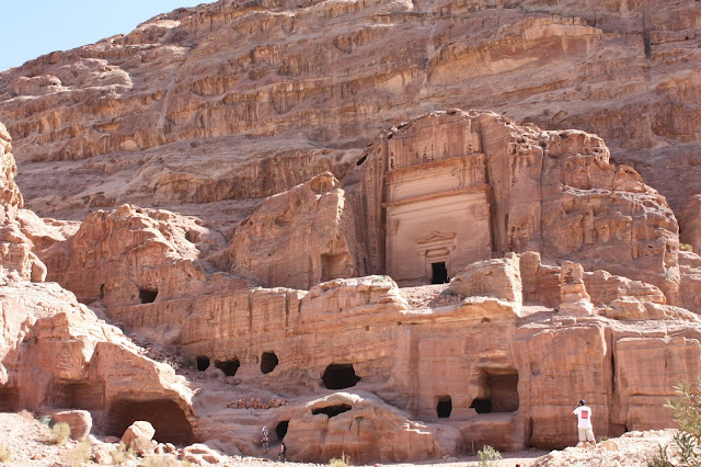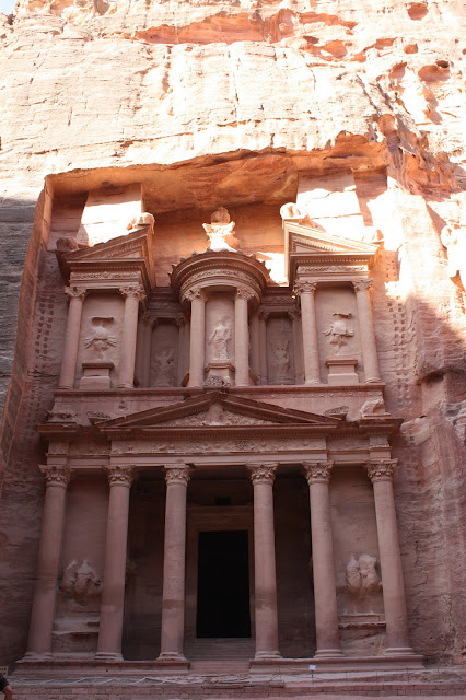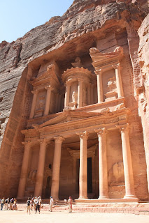 A elaborada fachada escavada na rocha representa a geniosidade da engenharia dos nabateus.