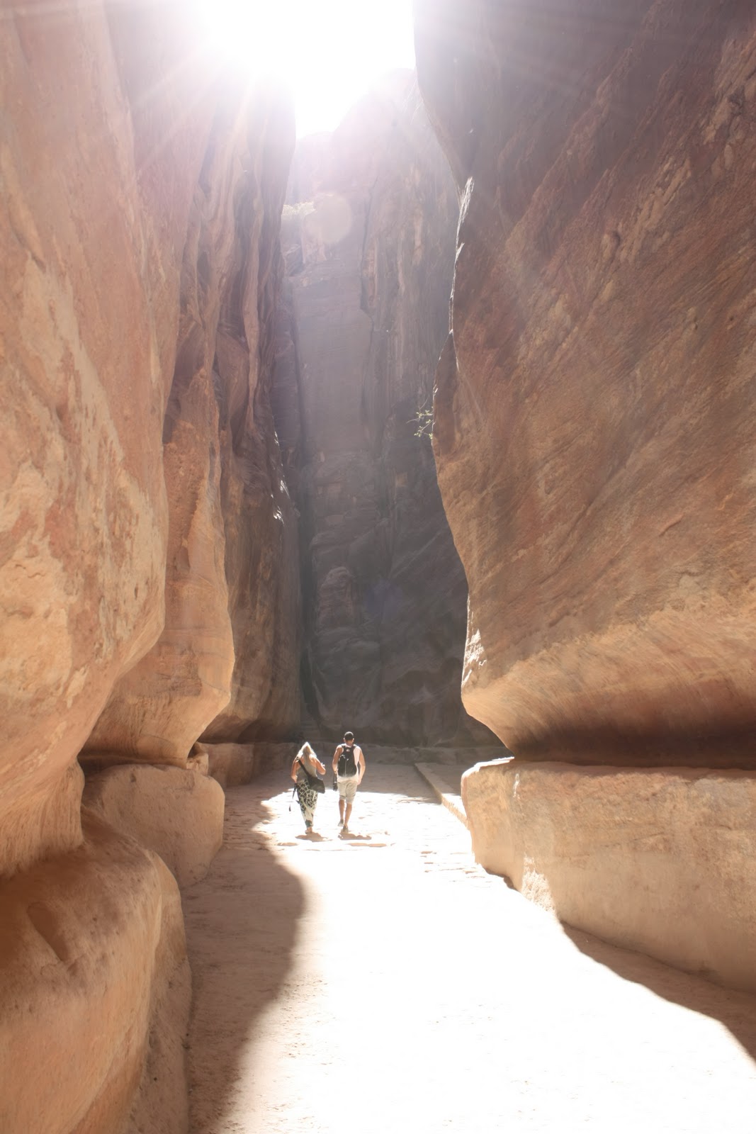 A aventura começa por uma caminhada pelos chamados Siqs, que são a principal entrada antiga de Petra. Os siqs são caminhos de 1200 metros de extensão, profundos e estreitos, dotados de uma expressiva beleza natural. São margeados por cliffs de pedras avermelhadas de até 80 m de altura. Passar pelos cliffs de Petra já é uma aventura à parte e no caminho, você vai se deparando com características típicas petrenses, como formações geológicas bizarras, rochas coloridas, áreas de agricultura, canais de água cortados em penhascos, barragens e muitas escavações nas rochas.