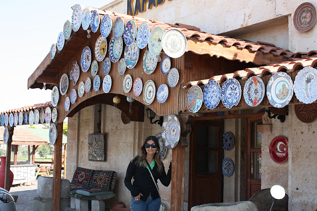 Depois de tanto comer, quem tem disposição pra fazer mais alguma coisa? Ninguém, mas nós ainda tínhamos uma missão: reservar nosso passeio de balão para o dia seguinte. Havia lido sobre 2 empresas conceituadas: a Goreme Balloons e a Anatolian Balloons. Fomos na Goreme primeiro e o preço estava salgado: 150 euros por pessoa. Eu já sabia que era nesta faixa, logo já estava preparada para a facada, mas não custava negociar e lá não teve jeito. Nada de reduzirem os preços. Então seguimos para a Anatolian. Lá  preço também era 150 euros, mas joguei um papo de que eu tinha por 120 euros e que não poderia pagar mais, etc, etc. Aí eles deixaram por 120 euros por pessoa e pediram pra gente não comentar com ninguém (não falem que eu contei, hein?!).