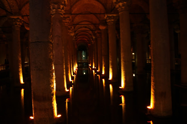 Em nosso segundo dia em Istanbul, desta vez mais descansados, fomos direto para a Mesquita Azul, já que era atrás do nosso hotel. Mas, como era domingo, estava uma fila gigantesca para entrar, bem como na Basílica de Santa Sofia. Então as deixamos para o dia seguinte e fomos visitar a Cisterna de Yerebatan, que fica no subsolo da Basílica.