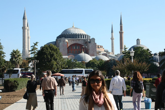 Na frente da Mesquita, está Hagia Sofia ou Aya Sofya ou Santa Sofia.