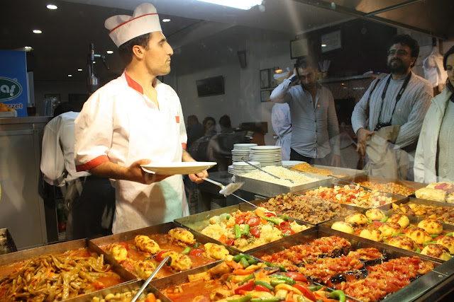 Já era noite e estávamos podres de cansados. Pegamos o Tramvay pra Sultanahmet e fomos jantar num restaurante perto do hotel, de comida típica turca, deliciosa por sinal. Chama-se Baren II. Comemos uma beringela com tomates e cebolas que estava divina e também uma batata gratinada com frango ao molho com arroz, estupendos! Depois, só nos restava descansar pra realmente aproveitar o que Istanbul tem de melhor!