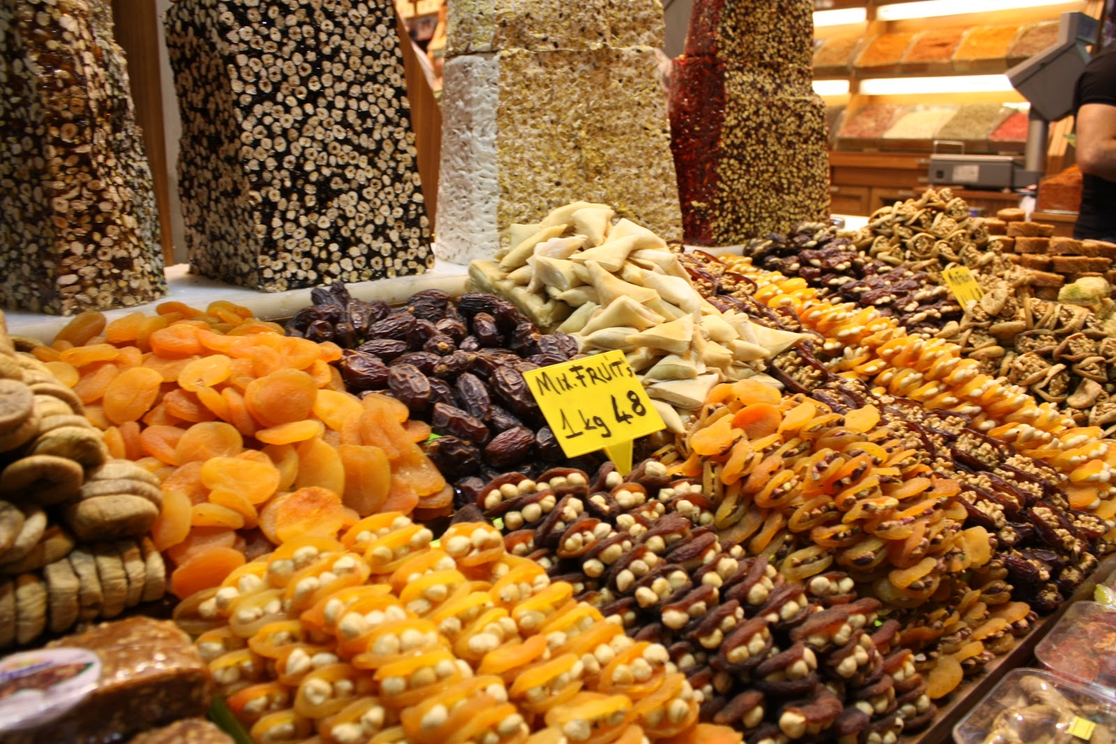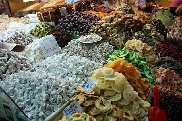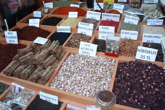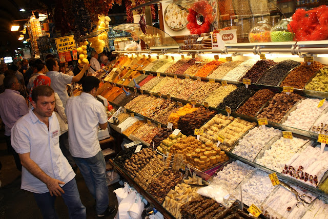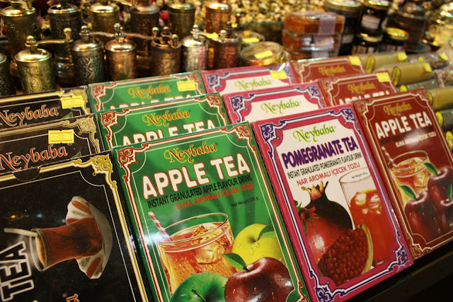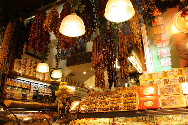 As especialidades do mercado são as maravilhosas delícias turcas, como os doces lokumbaklavas (meus preferidos), tulumbas, kadayif, sutlac, lokma, além de diversos tipos de especiarias e chás. Tem até chá do amor rsrs. Mas também há coisas de decoração dentro do mercado e nas lojas ao redor, com preços mais atrativos que o do Grand Bazar, pode crer, apesar de ter bem menos variedade nesta categoria. Para saber mais sobre a culinária turca, acesse este post aqui, muito interessante, do blog Fui e Voltei pra Contar.