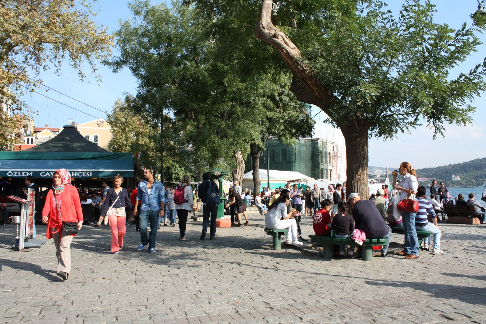Ortakoy é um bairro residencial, à beira do Bósforo. Na praça central, é comum  vermos jovens locais sentados em banquinhos de frente para o Bósfor, comendo kampir, uma batata gigante, recheada com tudo que se imagina. Aos finais de semana, rola uma feira de artesanatos na pracinha local. Vários restaurantes e lojinhas de artesanato estão espalhadas ao redor de Ortakoy.