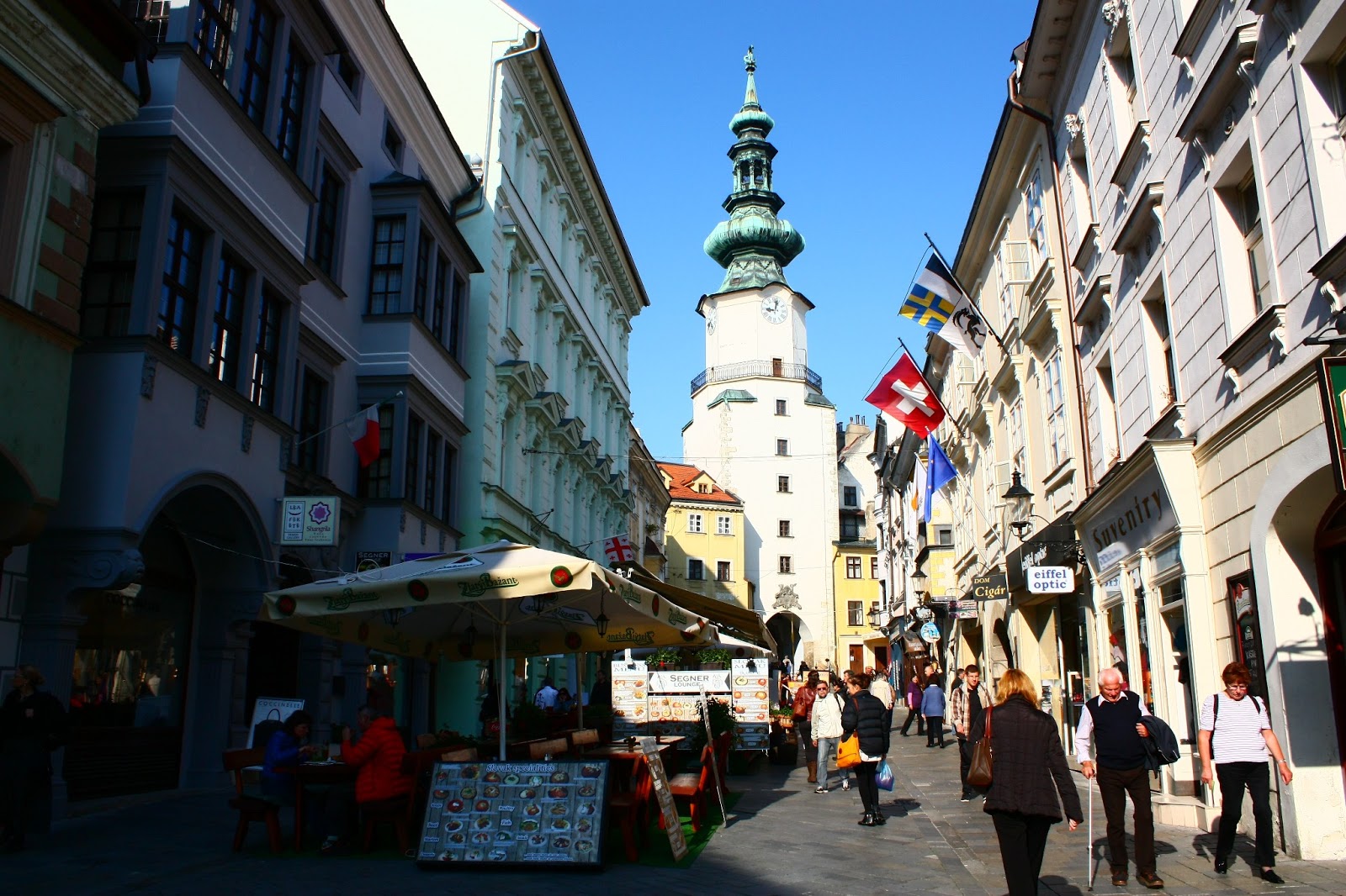As ruas Ventúrska e Michalská são repletas de restaurantes charmosos e levam até Portão de São Michel, onde funciona um museu é um dos cartões-postais da cidade.