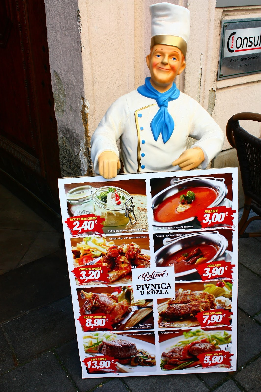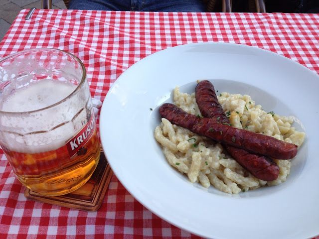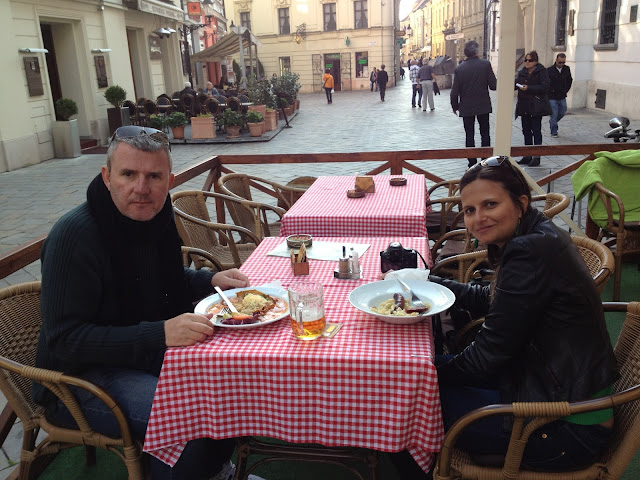 Seguimos em direção ao coração da cidade velha e encontramos restaurantes simpáticos pelo caminho. Já gostamos dos preços da cidade, comparados a Alemanha e Áustria. Aqui come-se muito bem pagando bem menos que em outros países europeus.