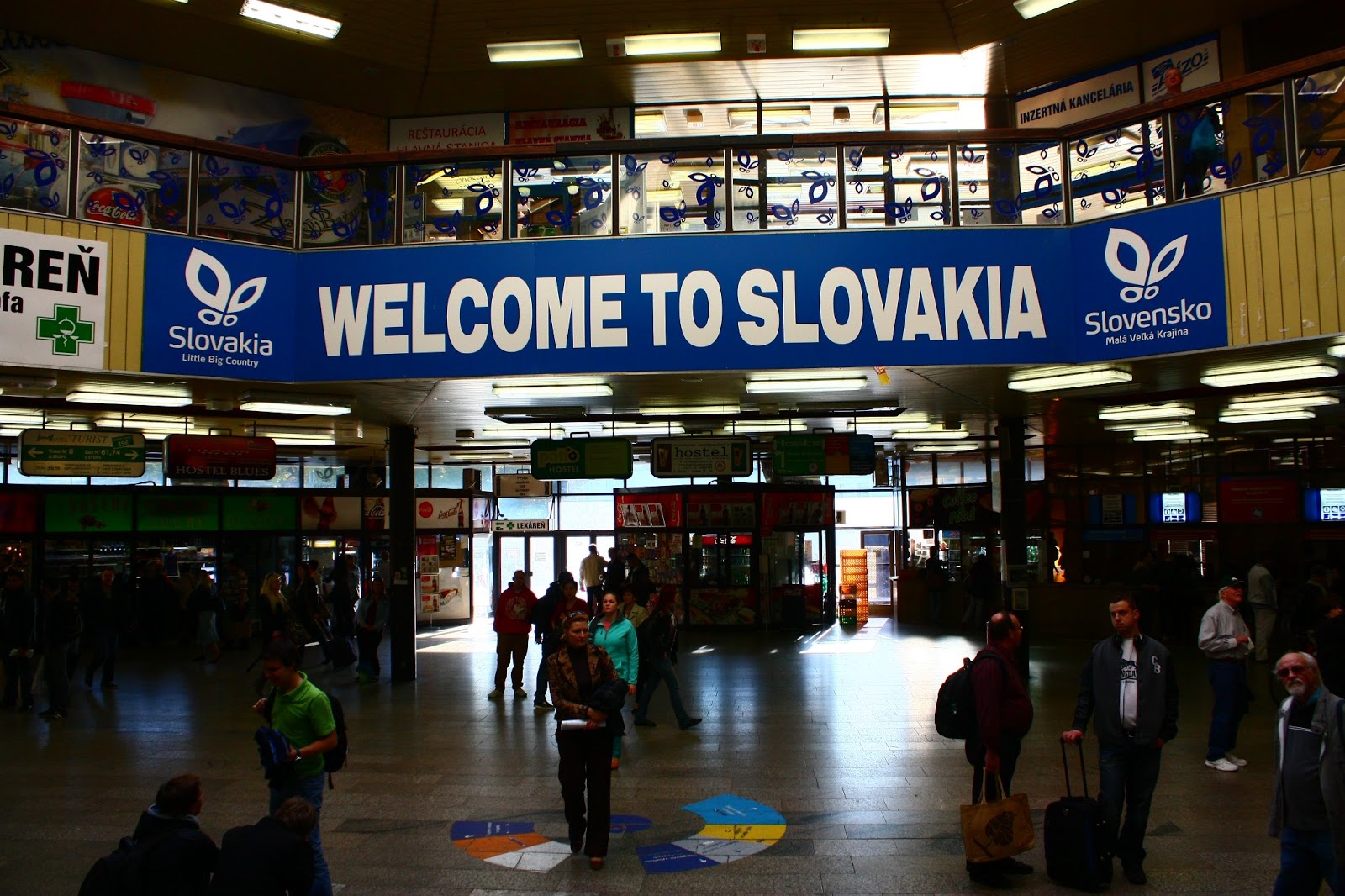 O local é bem confuso, nada em inglês, a não ser a placa de boas vindas: “Welcome to Slovakia”