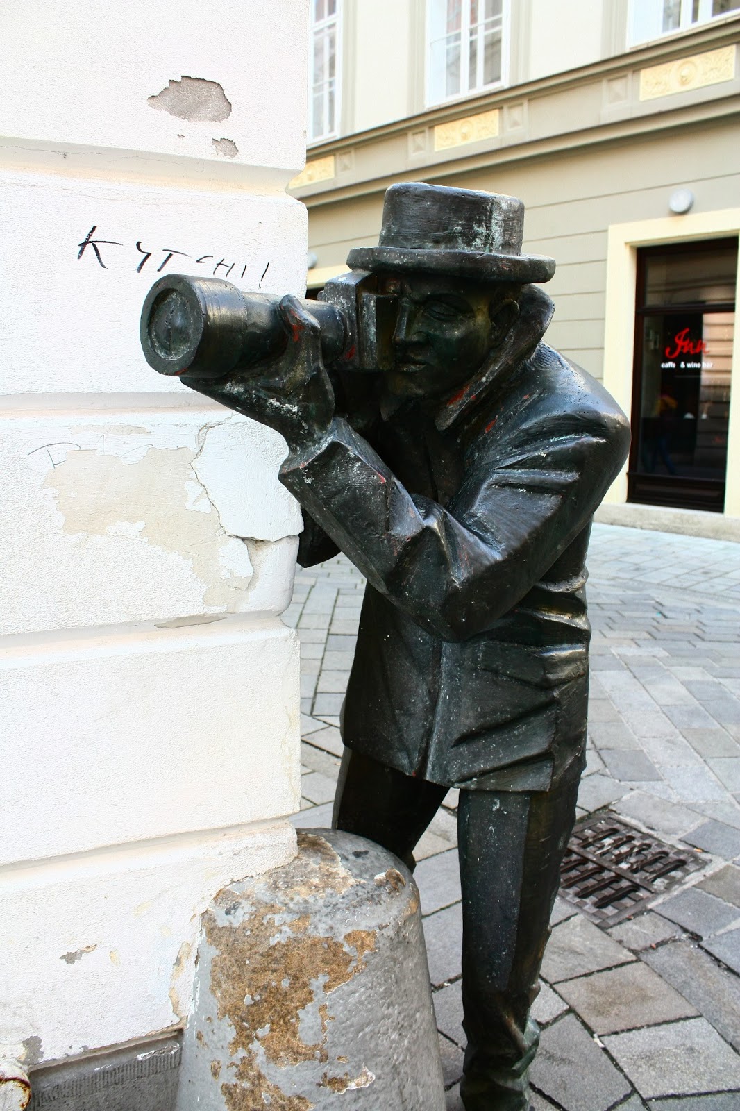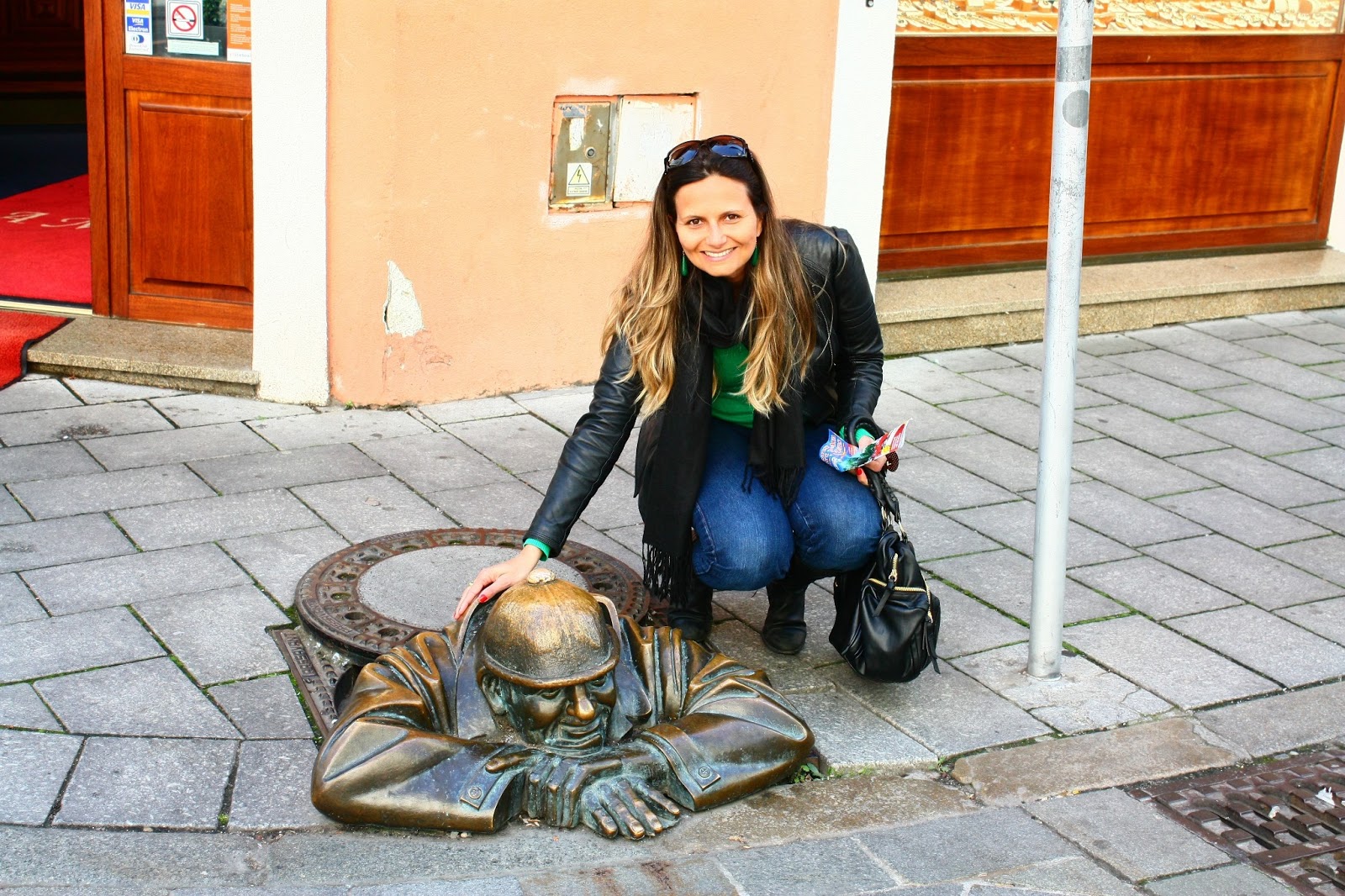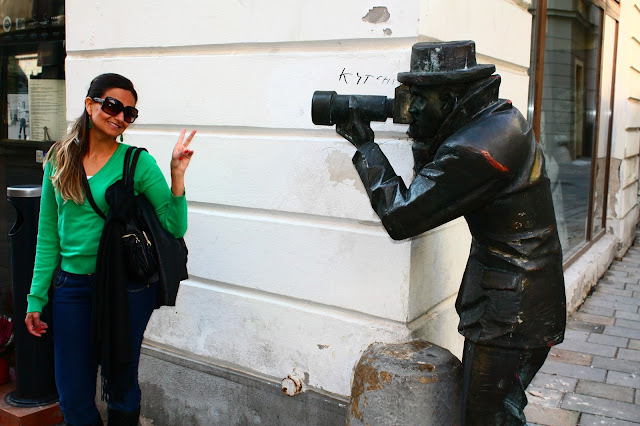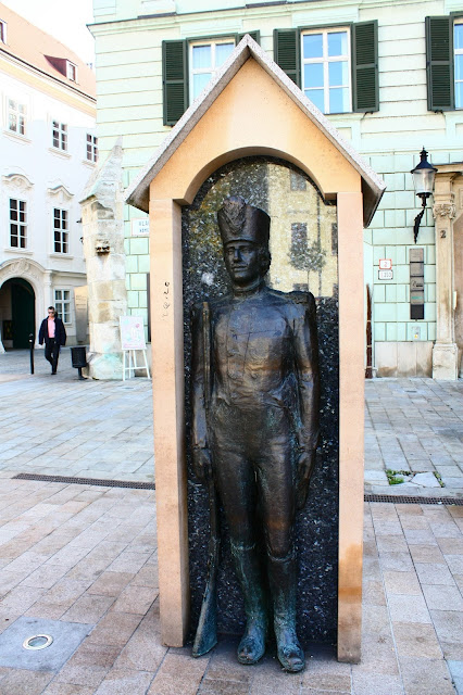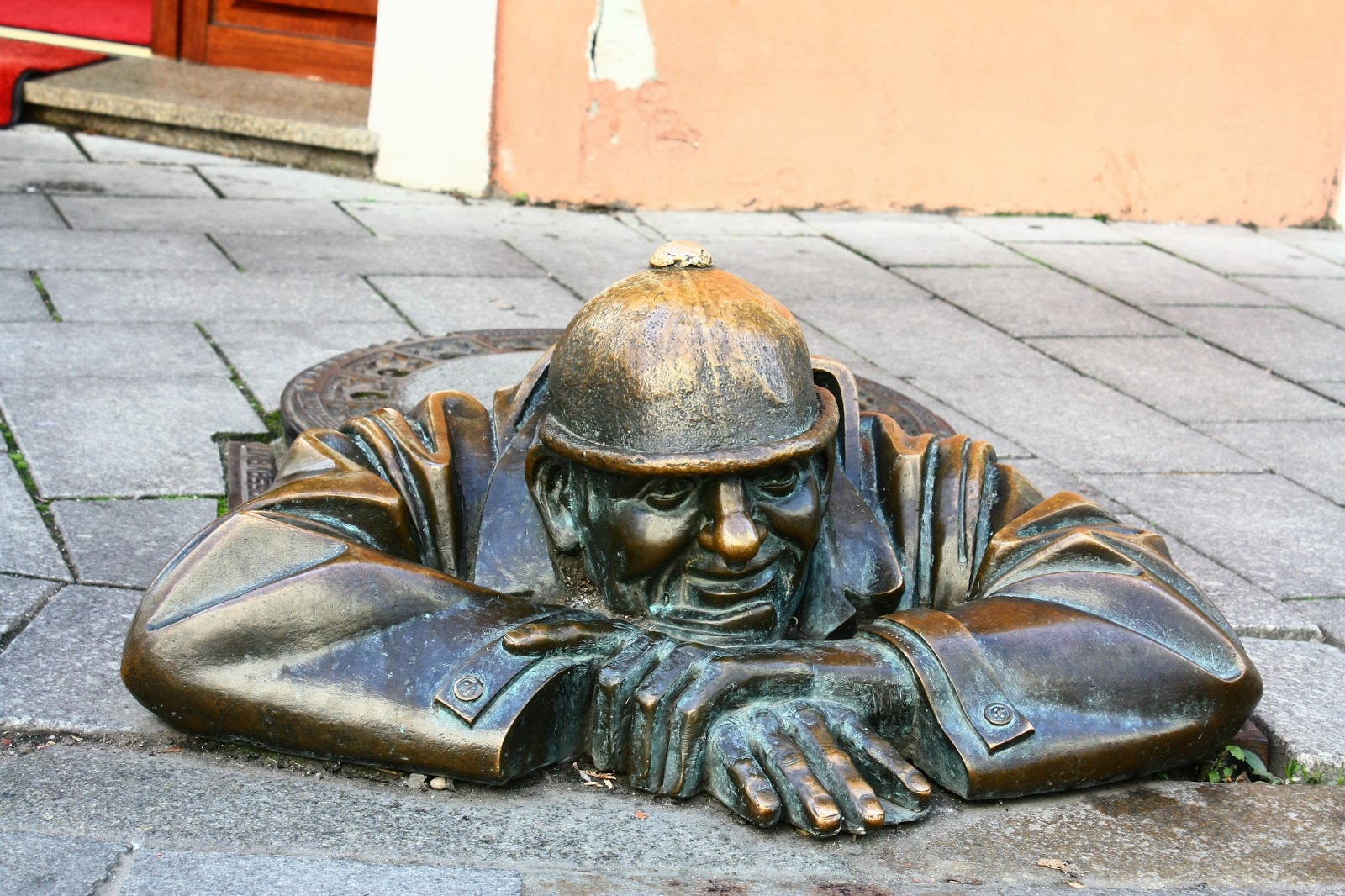 Um dos grandes encantos de Bratislava é sair pelas ruazinhas da cidade e tentar achar suas muitas estátuas espalhadas por elas. Abaixo foi a primeira que avistamos, a estátua do operário, numa esquina super movimentada (no cruzamento da rua Panska com a Sedlarska).