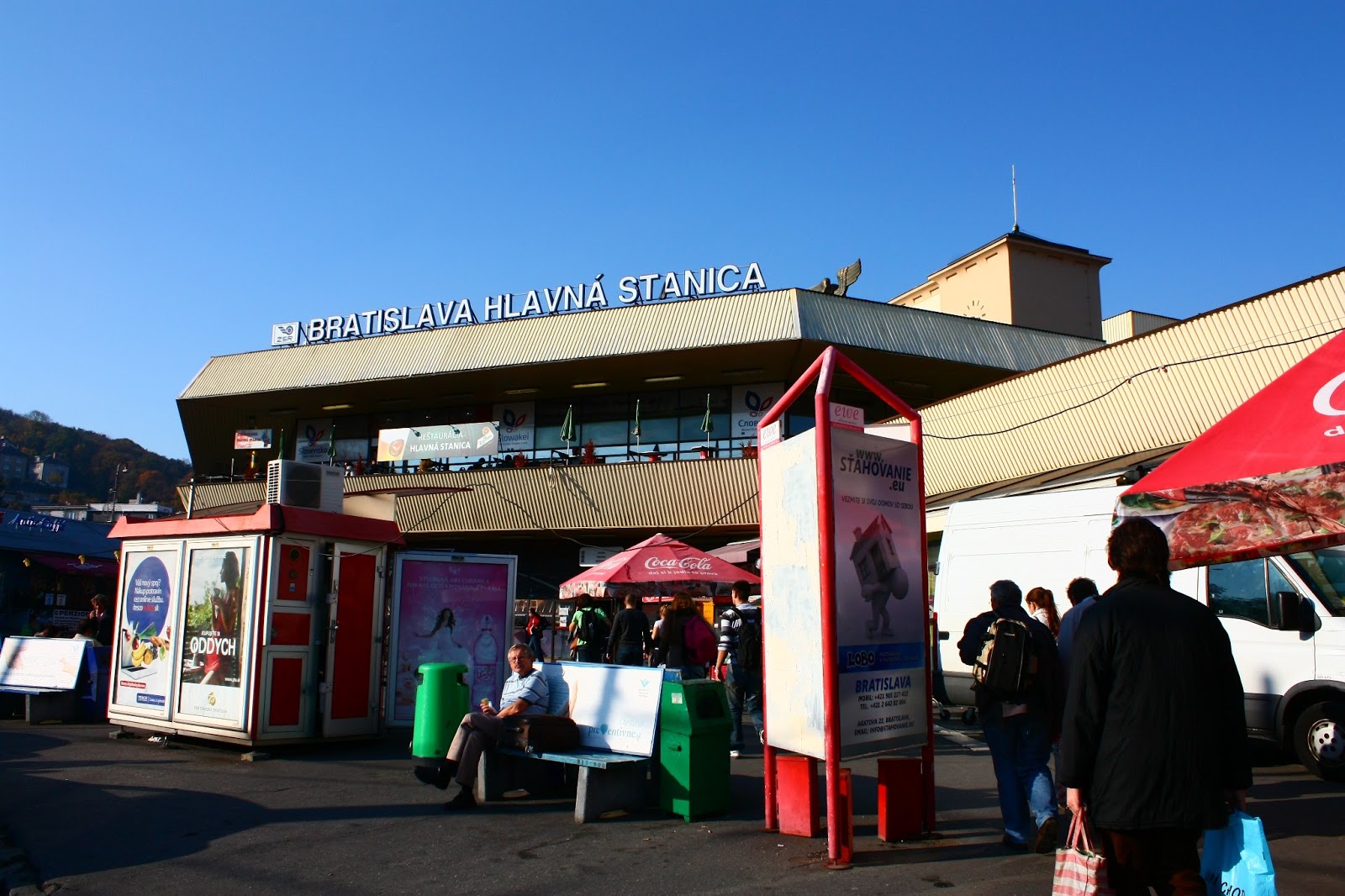 Bem, pra começar, estávamos em Viena e seguiríamos pra Budapeste ao final do dia e Bratislava estava ali, bem no meio do caminho. Por que não? De manhã bem cedinho, fizemos check-out no hotel de Viena e fomos até a estação rodoviária da cidade (metrô CAT – City Air Terminal), se é que podemos chamar aquilo de rodoviária. Terrível. Compramos os tickets com a Eurolines por 7,20 euros. Os ônibus são novinhos e têm wi-fi e a viagem dura cerca de 1 hora. Quando chegamos, o ônibus parou debaixo da Ponte Nova, num lugar horroroso, dizendo ser ali o ponto mais perto do centro. E só depois nos demos conta que era mesmo!