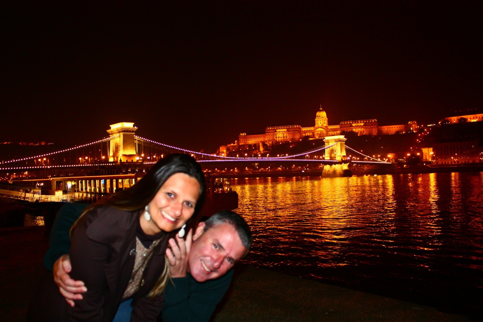 Voltamos pras margens do Danúbio, para fazermos fotos noturnas. Adoro fotografar e perder as imagens de Budapeste à noite é um verdadeiro desperdício! Montei meu tripé (parte mais chata) e foi uma festa… Muitas poses e ângulos até acharmos a foto perfeita do casal! Foram várias fotos e muitas risadas. A noite estava gelada, mas bonita! Um momento único pra se guardar pra sempre…