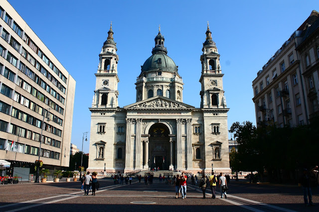 Continuamos a caminhar pela rua Október 6, uma rua repleta de cafés e restaurantes charmosinhos e requintados. De repente, avistamos ao longe a Basílica de São Estévão.