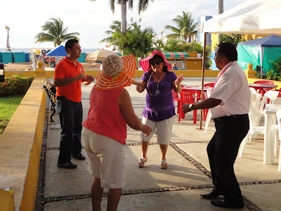 Andamos pelo centrinho e fui comprar chaveirinhos pra trazer…Como era carnaval, o centro estava animado, com os locais dançando, música alta, barraquinhas de comida sendo montadas para o “Desfile das Escolas de Samba Músicas Mexicanas” que viria a acontecer mais tarde. Uma coisa que me chamou muito a atenção no México foi a educação, simpatia e receptividade do povo de lá! Como eles são simpáticos, sorridentes e querem agradar os turistas a todo custo! Muito parecidos com os brasileiros, concordam? E por falar em brasileiro, êta povo que tá em todo lugar… Pra vocês terem idéia, tinha um navio de cruzeiro em Cozumel cheeeio de brasileiros, aliás, cheio não, acho que o cruzeiro era só deles rsrs!