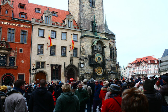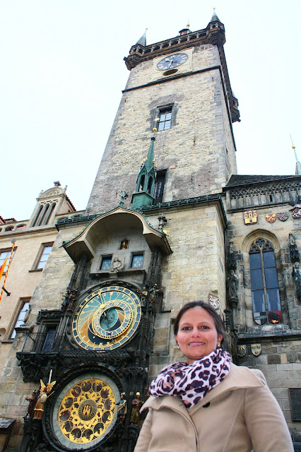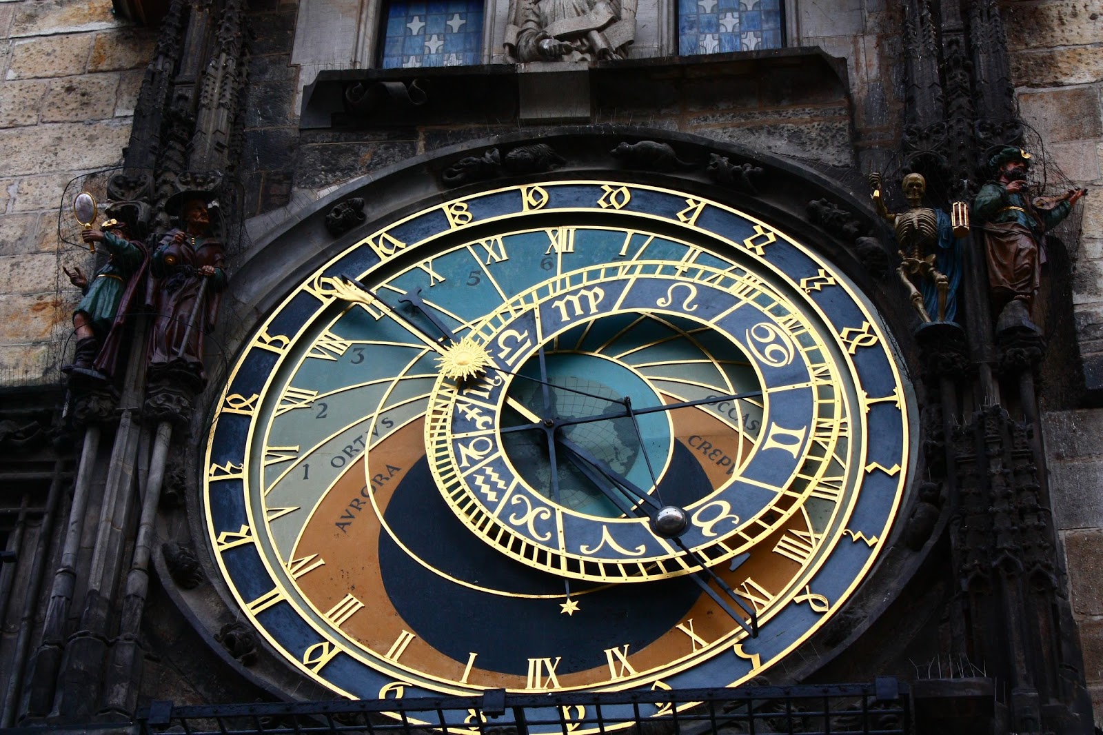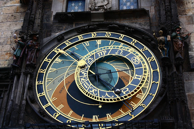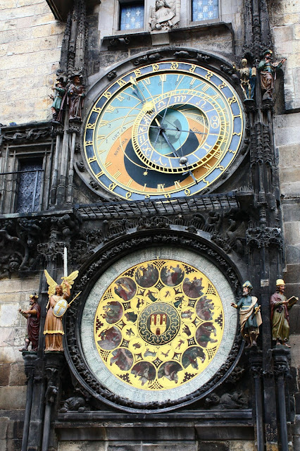 O relógio foi construído em 1410 e está dividido em três partes: o mostrador astronômico, representando as posições do sol e da lua, um mostrador-calendário, representando os meses (ou zodíacos) e a “Caminhada dos Apóstolos”. Esta última é uma pequena encenação que acontece segundos antes de toda virada de hora. Vários bonecos representando os apóstolos “caminham” por duas janelinhas, ao som de uma música de fundo. Do lado direito, uma caveira que simboliza a morte vira sua ampulheta. Ao final, o galo que fica em cima cacareja e a hora vira! É muito lindo!