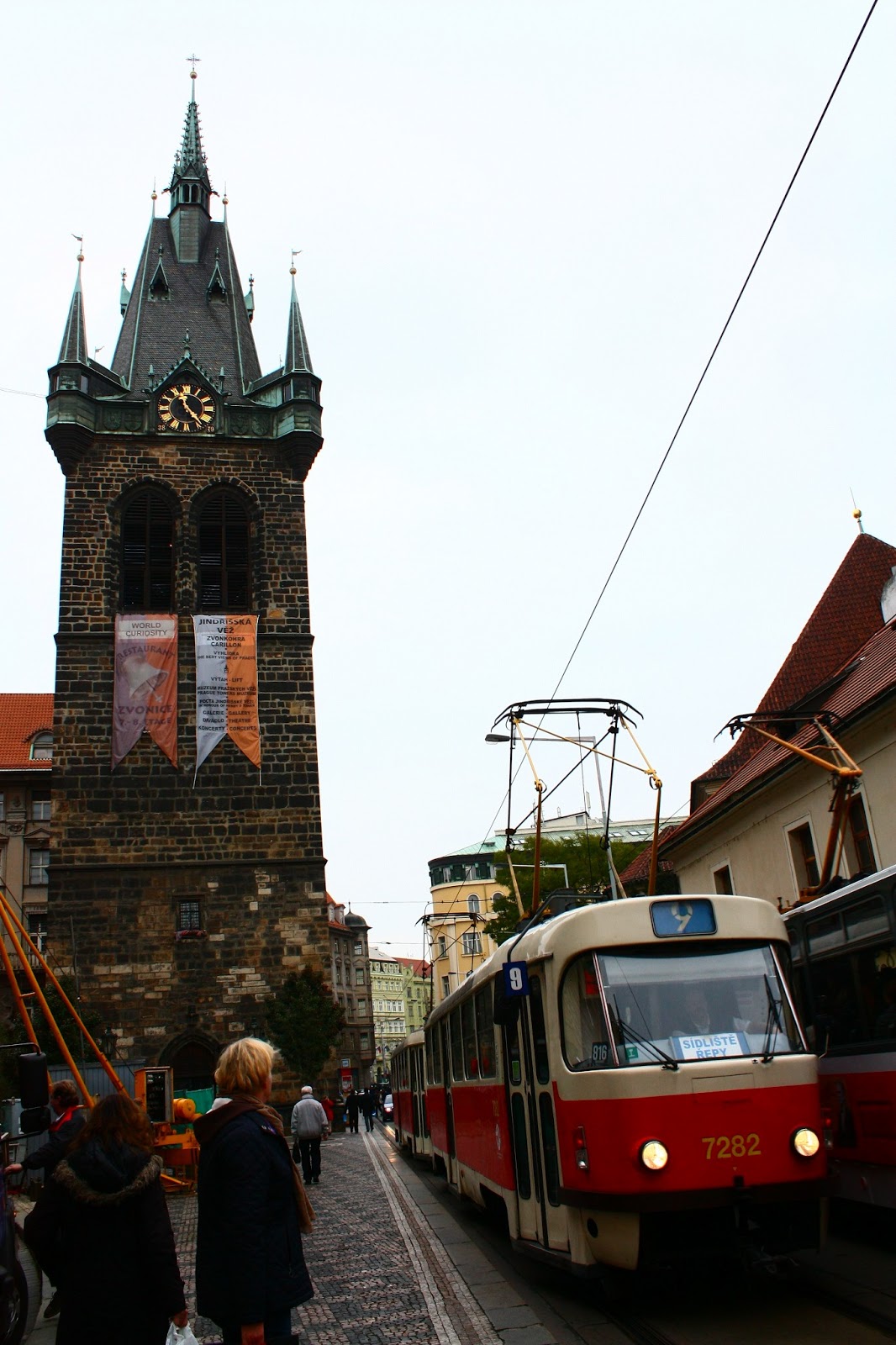 Uma das principais ruas que cortam a praça é a Celetná, onde ficava o nosso hotel, por sinal. A rua termina na Torre de Pólvora, uma das 13 entradas da Cidade Velha.